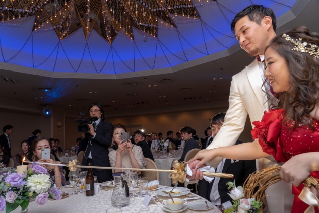 衣裳はとても好評でした。色もテイストも全く違ったものを選んだので。オープニングとエンドロールに思い出の写真をたくさん盛り込んだのでそれも好評でしたね。